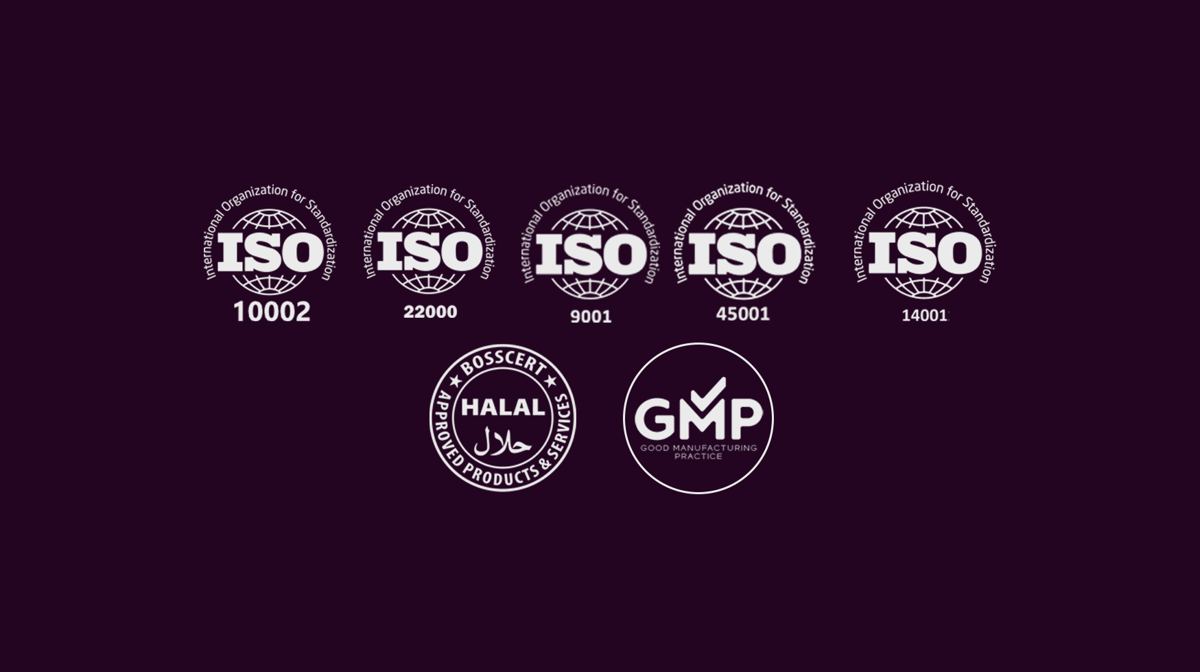 Voonka ürünleri ISO 9001, 10002, 22000, GMP, BRC ve Helal sertifikalarına sahiptir.